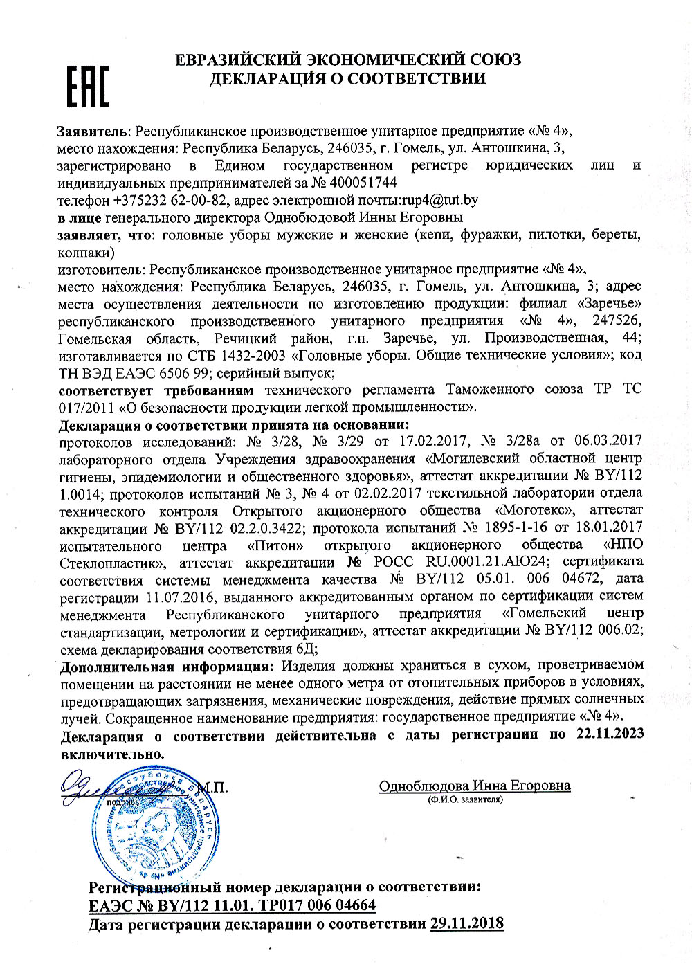 Филиал «Заречье» Республиканского унитарного предприятия «№ 4» производит и реализует: