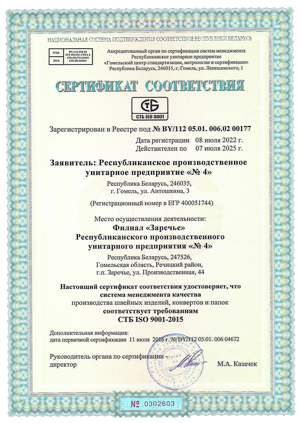 Филиал «Заречье» Республиканского унитарного предприятия «№ 4» более 20 лет производит высококачественные и востребованные хлебобулочные, швейные, бумажно-картонные товары.