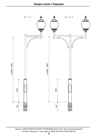 Опоры типа «Торшер» ОТ - 3 - 1 ОТ - 3 - 2 H=2500…5000 H=2500…5000 1050 1050 1000 1000 Филиал «ЭЛЕКТРОМОНТАЖНОЕ УПРАВЛЕНИЕ №4» ОАО «Белэлектромонтаж» 247760 г.Мозырь-11 тел./факс 8-0236-209-449, 8-0236-209-451 28