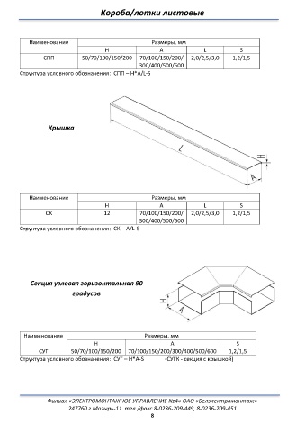 Структура условного обозначения: СУГ – H*A-S (СУГК - секция с крышкой)