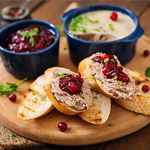 Нежный паштет из цыпленка с джемом из черной смородины и белыми гренками