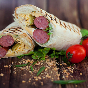 Мини-рулеты из ветчины с сыром «Эдам» и чесноком