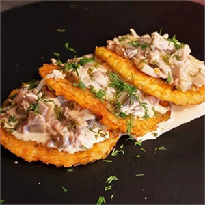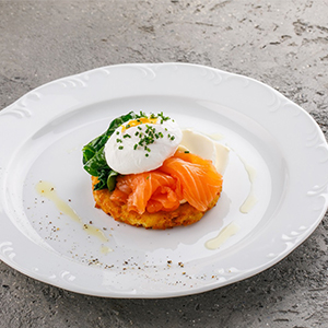 Яйца «БЕНЕДИКТ» с красной рыбой на драниках