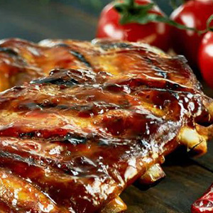 Свиные ребрышки барбекю с картофельными дольками и соусом